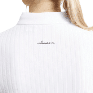 Pebble half sleeve is made of a soft and stretchable material with DryCool and breathable functions. It is knitted in a striped structure with an elegant shine. Knitted collar and 5 small buttons in placket. Sleeve cuffs are knitted with wide contrast stripes. Abacus logo at back below collar.