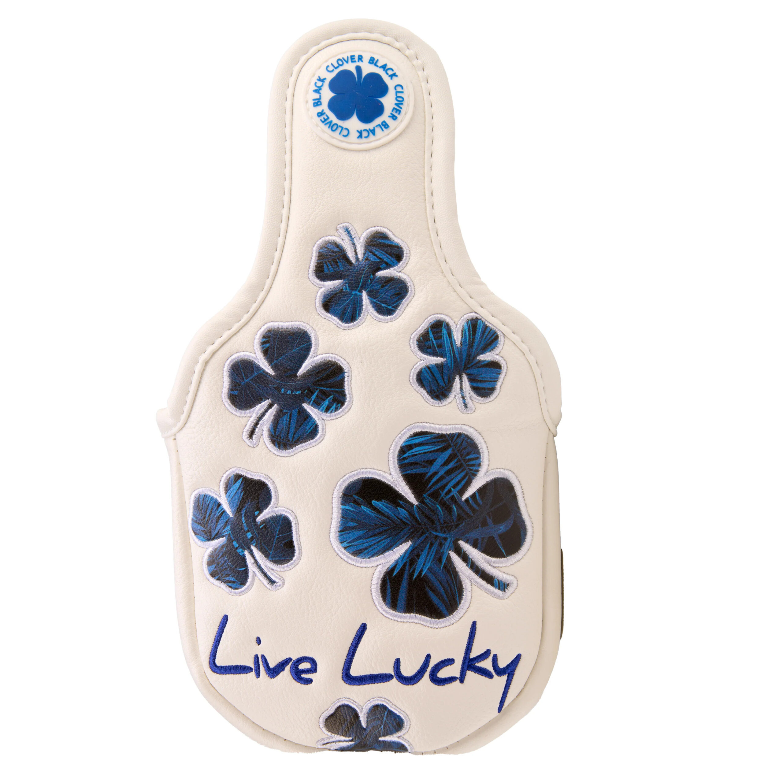 CMC DESIGNElevate your golf bag with a Custom Mallet Putter Headcover from our Black Clover “Live Lucky” Collection. Our Golf Headcovers are uniquely designed in-house, and combine meticulous craftsmanship with a plush inner lining to protect your investment. Add a touch of personality and enhance your golf game in style with the Live Lucky “Aloha” Mallet Putter Cover.